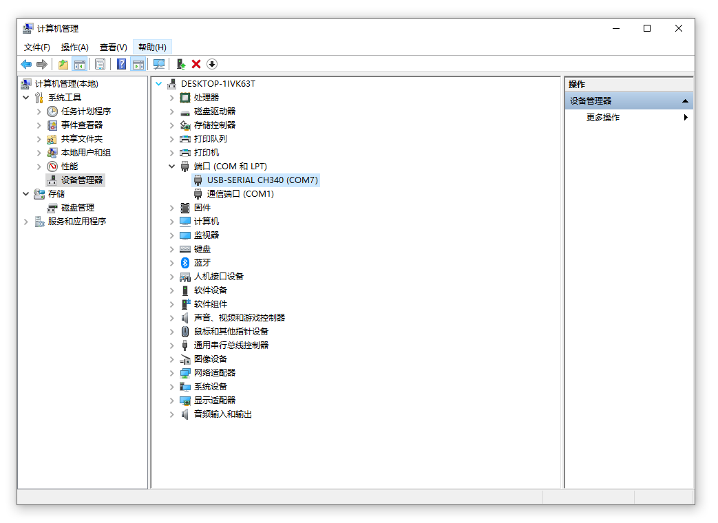 串口被Windows正确识别后,通过设备管理器会查询到具体的串口号(如COM12),如下所示。
