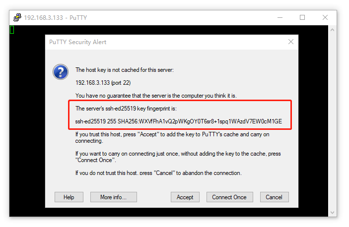 - 首次连接,ssh客户端会根据ssh主机IP地址等信息生成一个ssh-key,以绑定标记ssh主机和它所对应的IP地址。若ssh主机的IP地址有变更,又或者别的ssh主机用了曾被记录下来的IP地址,导致ssh主机与IP地址不匹配,则会出现连不上的情况。此时需要用户手动清理掉客户端(putty)关于ssh主机与IP地址的绑定。具体的清理方式请用户自行根据所用的ssh客户端查阅,此处不展开叙述。