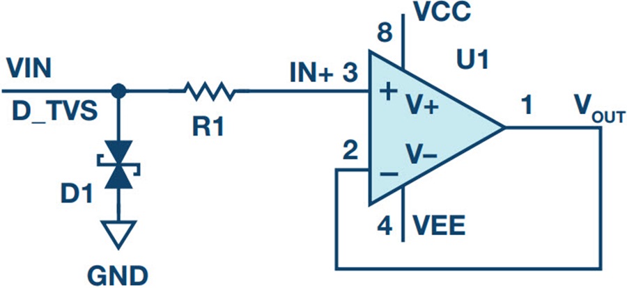 不能!不要这样做。这不是个好主意。OVP和OTT特性让部件的输入在承受超过电源电压的电压时,本身不会受到损坏。依靠这些特性来保护电路不受高压瞬变影响,就像是依靠雨靴来应对高压冲水机一样。雨靴只对水深不超过其高度的浅水沆有效,就像OVP和OTT只适用于比其额定值低的电压。OVP和OTT的额定电压比给定的供电轨电压高几十伏。它无法抵抗8000V的高压。 |