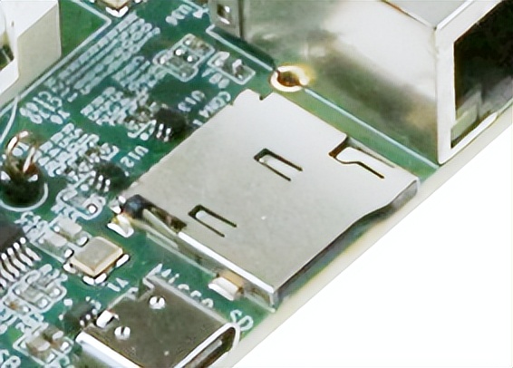 CON4为Micro SD卡接口,通过SDC0总线引出,采用4bit数据线模式。