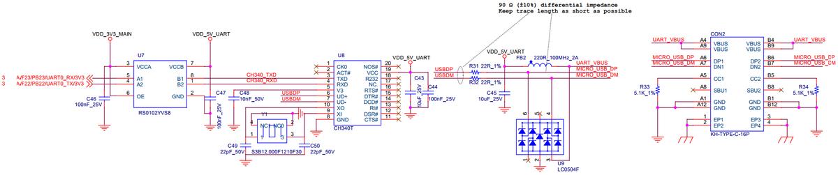 评估板通过CH340T芯片将UART0转成Type-C接口,作为系统调试串口使用。