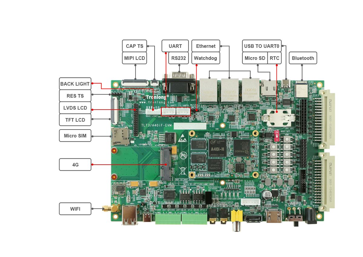 核心板CPU、ROM、RAM、电源、晶振等所有器件均采用国产工业级方案,国产化率100%。同时,评估底板大部分元器件亦采用国产工业级方案。