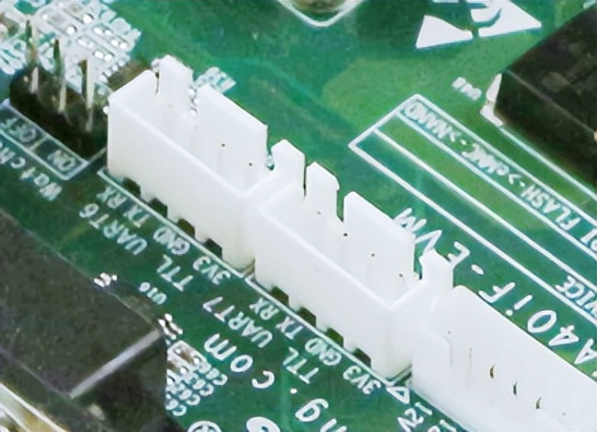 评估板直接引出UART6、UART7作为TTL串口,接口均采用4pin 2.54mm白色端子方式。