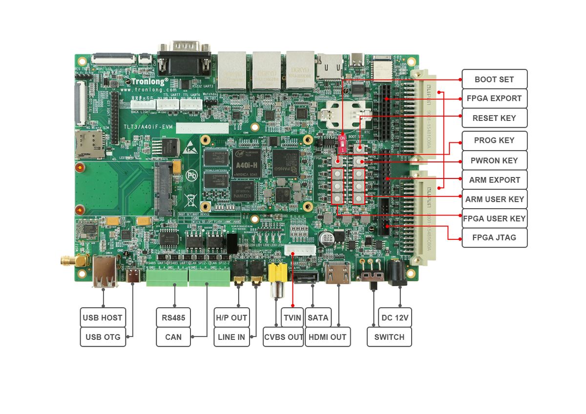 SOM-TLA40iF核心板板载CPU、ROM、RAM、晶振、电源、LED等硬件资源,并通过工业级B2B连接器方式引出IO。核心板硬件资源、引脚说明、电气特性、机械尺寸、底板设计注意事项等详细内容,请查阅《SOM-TLA40iF工业核心板硬件说明书》。