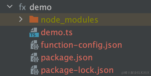 其中有一个 ts 文件,这个就是我们的函数入口了,其他的我们都暂时不用动。这里我默认的是 nodejs 开发模式以及 http 请求模式。如果你们需要修改配置可以看一下官方文档:https://developer.huawei.com/consumer/cn/doc/AppGallery-connect-Guides/agc-cloud-function-start-from-here-0000001512489692