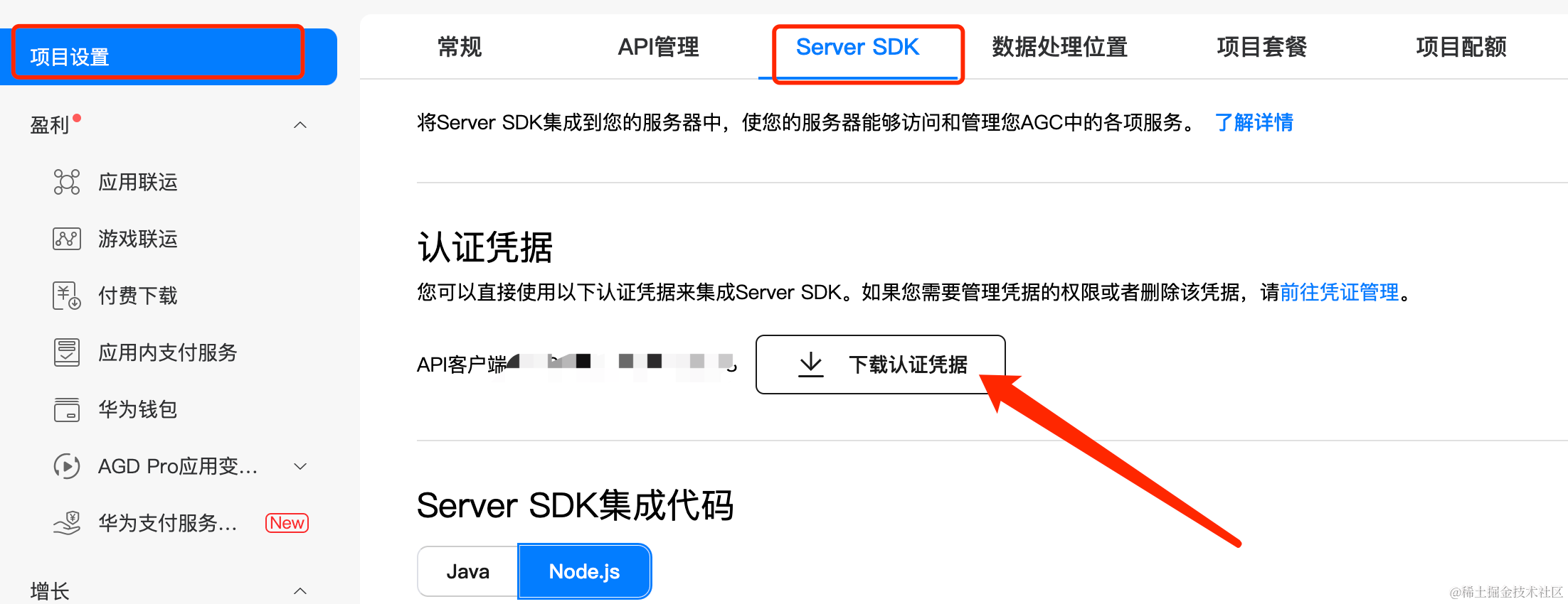 const path = require('path');const clouddb = require('@hw-agconnect/database-server/dist/index.js')const { AGCClient, CredentialParser } = require("@hw-agconnect/common-server");const db_demo = require('./db/bd_demo') // 从开发者平台下载对应的js配置文件,放在对应的函数目录根目录下// 加载凭证文件,凭证文件也是在开发者平台下载,具体看我的截图let client_name = "./db/agc-apiclient-chen.json";let client_path = path.join(__dirname, client_name);let credential = CredentialParser.toCredential(client_path);AGCClient.initialize(credential, "clientCN", "CN");let myHandler = async function (event, context, callback, logger) { // xxxx};export { myHandler };