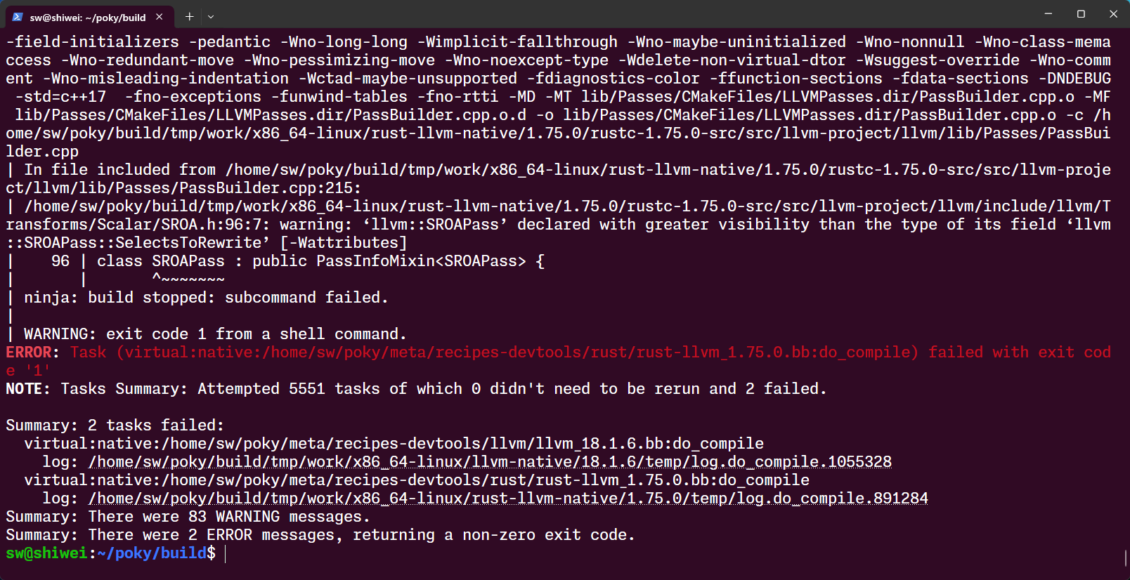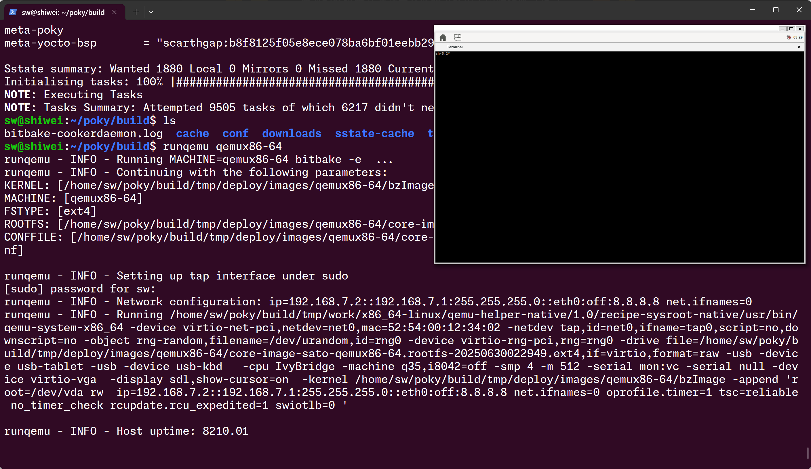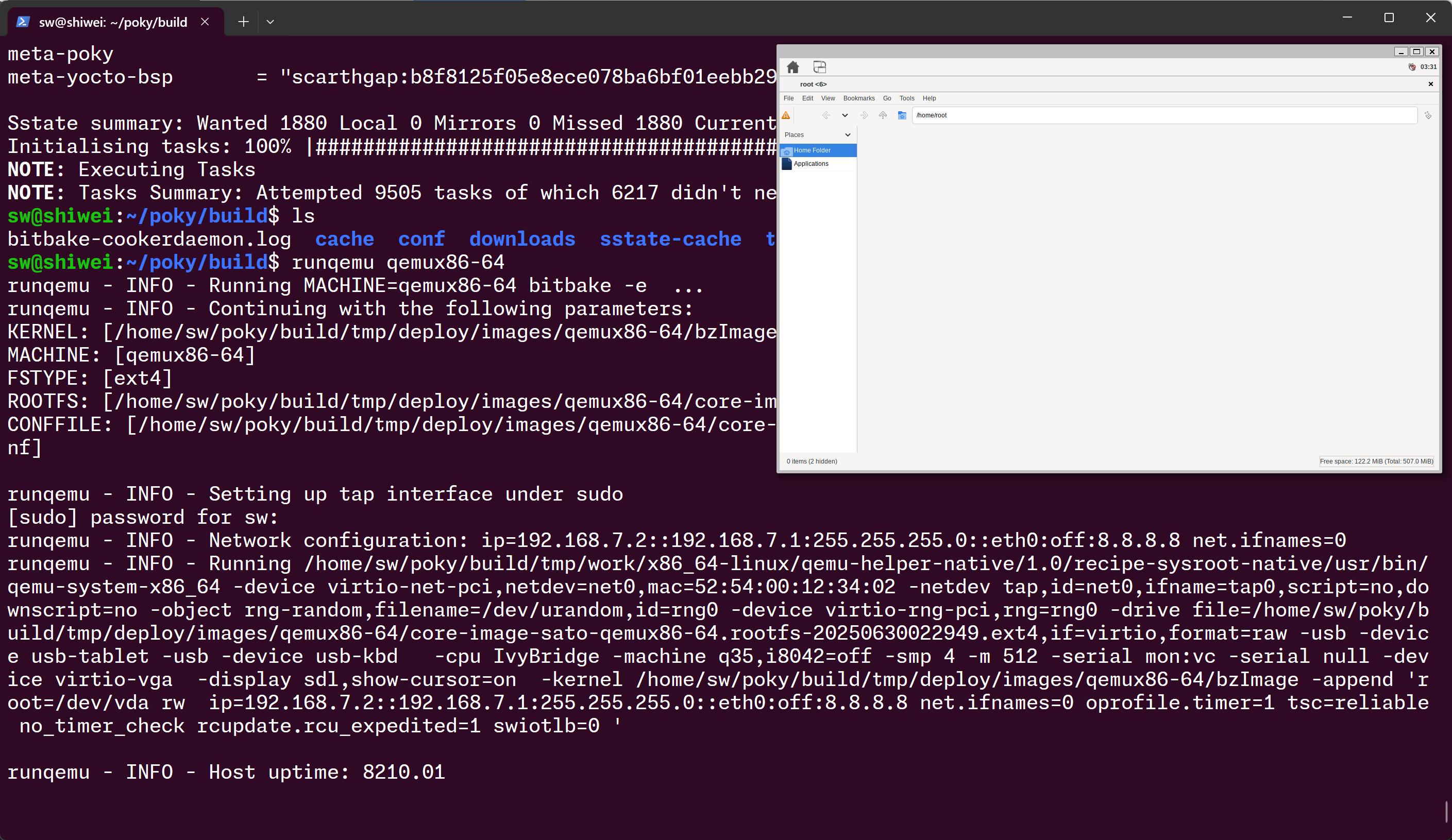 后面就是准备开始构建了,根据书上内容,到最后会有一个qemu的虚拟镜像出来。 先加载环境变量,加载完会切换到build目录: