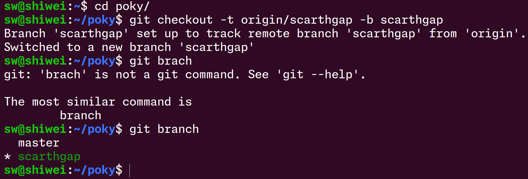 下载完之后,进入Poky文件夹,检出scarthgap分支: