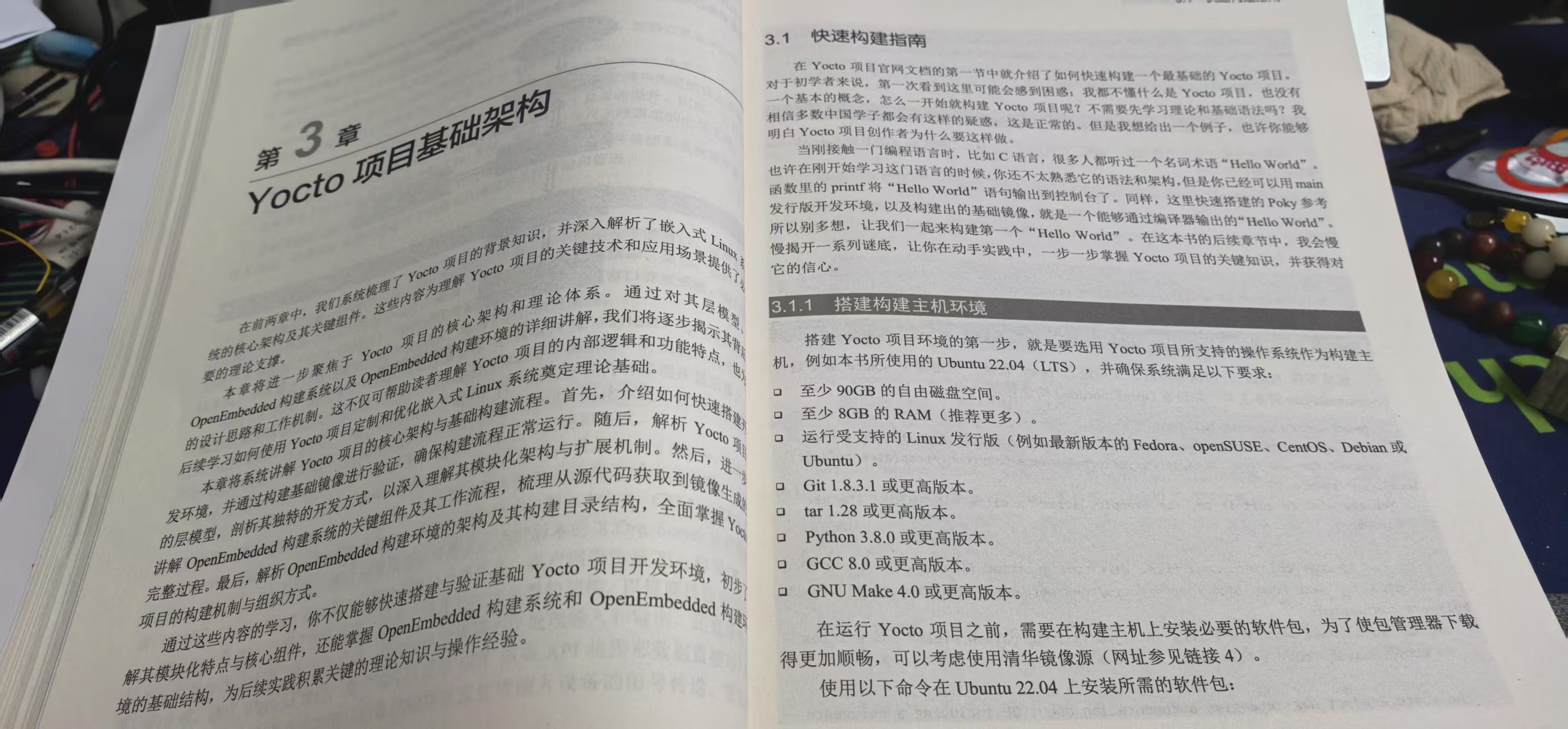 一、前言非常感谢电子发烧友论坛让我入选这本<<Yocto项目实战教程>>书的试读。回想起2022年当时好像参加阿里的某个比赛得到了D1s的开发板,提到用Yocto构建工具,但是当时关于这块的内容真是少之又少,问了很多朋友都说没听过这玩意,后面到2023年的话,有一些朋友都接触过这东西了,但是感觉非常难用,简直是不知道这东西存在的价值何在,产生了一些抨击的论调。周末收到书了,迫不及待的翻看了一下,对菜谱,层啊这些概念就加深了不少。