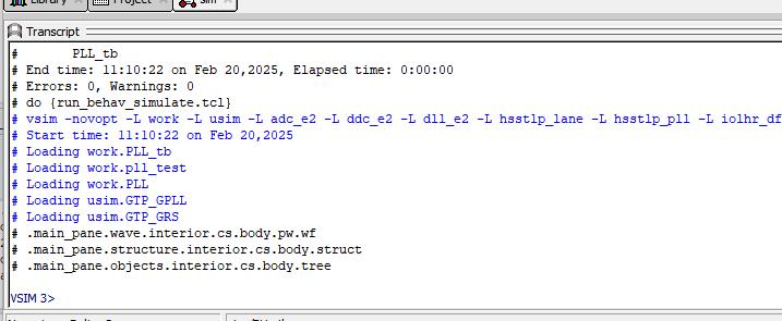 运行后会自动打开 Modelsim。并执行仿真,如果没有任何报错,则表示成功。如果出现错误,请检测 PDS 与 Modelsim 的配置。