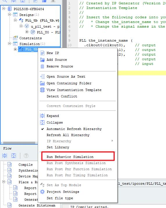 右键仿真的文件,选择 Run Behavior Simulation 开始行为仿真。