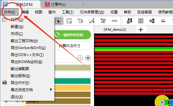 “文件”菜单作为华秋DFM软件的入口与出口,几乎 贯穿了整个设计审查与输出流程 。我们可以将其功能大致分为三类: