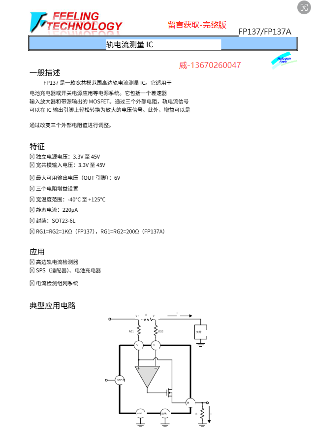 耐压与供电 : FP137的耐压区间更高,而且它的电源可以独立工作,也可以和被测电压接在一起,更灵活。 总的来说,FP137凭借它更高的耐压、灵活的增益和Pin-to-Pin设计,而且供货更稳定,价格更低。是替换INA139的可靠选择。 |