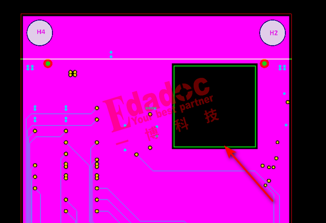 按照字符层中的正方形来开孔制作如下图,尺寸按18*18mm,公差按+/-0.1mm管控。