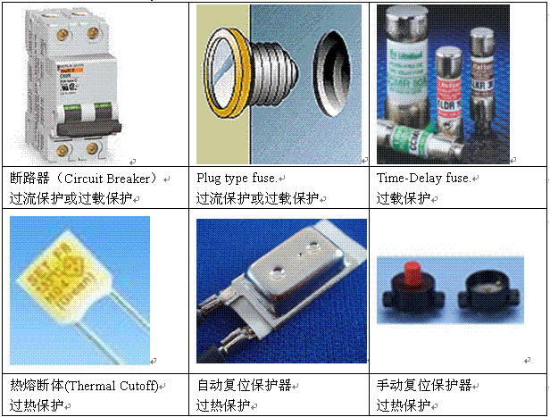 (2) 如果马达驱动的电器装有过载保护器(Overload Protection device),就不一定需要过热保护。这种情况就须要符合CEC Part I的要求,该种过载保护器与前面所讲的过热保护器不同,它只依靠响应马达的电流来实现保护,可以单独于马达也可以附装于马达。对于脱扣电流的选择,保护器的脱扣电流与马达额定电流之比一般不超过1.15。如果选择用Fuses(熔断器)作为单独于马达的过载保护器,这种Fuse就须要用Time-delay fuse of the type(“D” Fuse)。