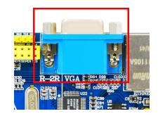 然后将VGA连接线一端连接显示器,另一端与开发板上的VGA接口连接。再将下载器一端连