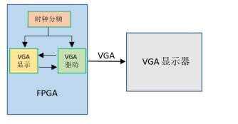 图 19.4.1是根据本章实验任务画出的系统框图。其中,时钟分频模块负责产生像素时钟,