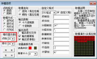 要16个Byte的数据来表示。因此在导出字模数据前,需要在“字模选项”中将“每行显示数据