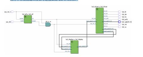 (lcd _driver)均与“RGB TFT-LCD彩条显示实验”完全相同,只对LCD显示模块(lcd_display)