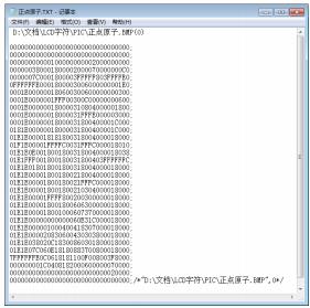最终由四个汉字“正点原子”提取到的字模数据如图 23.4.3所示。数据以十六进制显示,