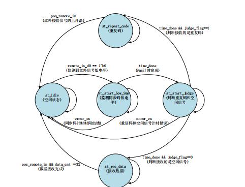 开始跳转到st_start_judge状态,否则跳转到空闲状态。程序后面对空闲信号、重复码以及数