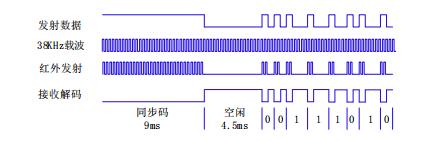 冲的间隔时间是不同的。逻辑“1”的载波脉冲+载波脉冲间隔时间为2.25ms;逻辑“0”的载