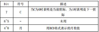 月/世纪寄存器的地址为07h,说明如下表所示: