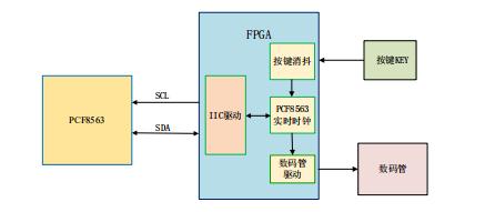 根据实验任务,我们可以大致规划出系统的控制流程:FPGA首先通过I2C总线向PCF8563写