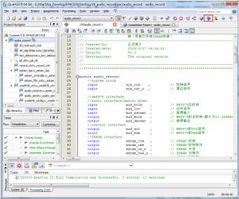 顶层模块(audio_record):在顶层模块中完成对另外五个模块的例化,并实现各模块控