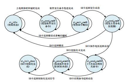 st_init_done(SD卡初始化完成)。因为SD卡的初始化只需要上电后执行一次,所以在初始化
