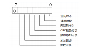 由上图可知,SD卡返回类型R1格式共返回1个字节,最高位固定为0,其它位分别表示对应