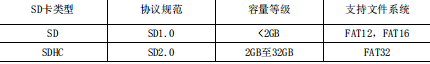 卡采用SD1.0协议规范,该协议规定了SD卡的最大存储容量为2GB;SDHC卡是大容量存储SD卡,