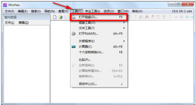 者“WinHex64.exe”打开软件。软件打开后,在菜单栏中点击“工具”,然后点击“打开磁盘”,