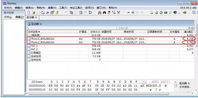 文件拷贝完成后,接下来我们使用WinHex工具软件查看这两个文件的扇区起始地址,该工