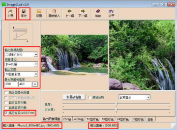 图片加载进来之后,在工具界面左侧设置输出数据类型为“二进制(*.bin)”,输出灰度为“16