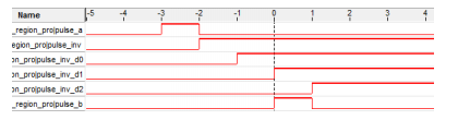 图 43.4.4为脉冲同步过程中SignalTap抓取的波形图,pulse_a信号拉高后,pulse_inv信