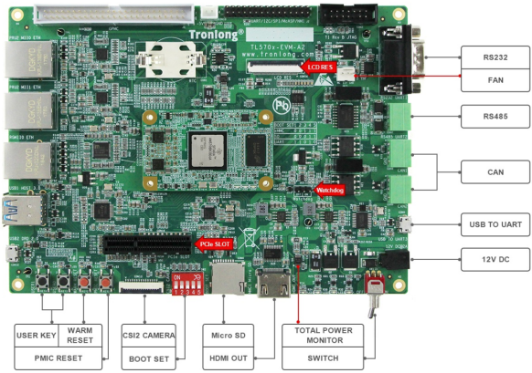 评估板接口资源丰富,引出双路PRU百兆网口、千兆网口、USB 3.0、CAMERA、GPMC、HDMI、PCIe等接口,方便用户快速进行产品方案评估与技术预研。