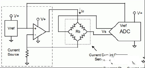 理论上,可以采用多通道输入 ADC 和数个串联驱动的电流型传感器。然而,传感器串联会使得激励电流(Ie),传感器信号(Vs)以及参考电压(Vref)更低。当传感器串联时,需要特别注意对 ADC Vref 的要求及系统噪声。