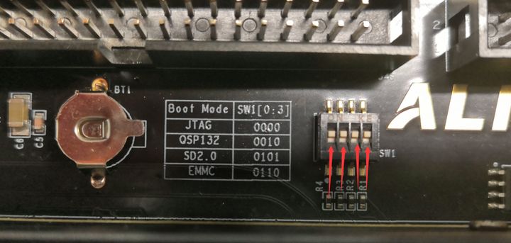 18)在上电之前最好将开发板的启动模式设置到JTAG模式,拔到”ON”的位置
