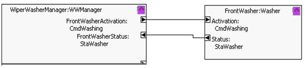 1) CmdWashing接口由WiperWasherManager构件提供,其数据内容为FrontWasher构件的Activation接口所使用。