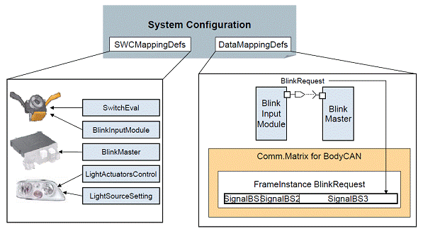 仍以车身/舒适领域的外部车灯控制系统的设计为例,在本例中只涉及转向灯的闪烁控制功能的实现。