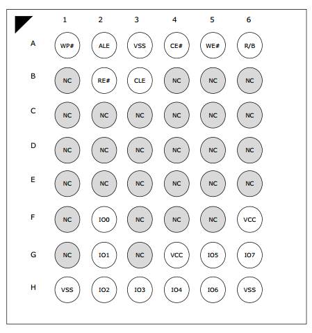 BGA(ball grid array) 球形触点陈列,表面贴装型封装之一。在印刷基板的背面按陈列方式制作出球形凸点用以 代替引脚,在印刷基板的正面装配NANDflash 芯片,然后用模压树脂或灌封方法进行密封。封装本体也可做的比QFP(四侧引脚扁平封装)小。