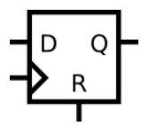 R 代表 synchronous reset,(就不用 SR 或者 SSR 表示了)所以这是一个带有同步复位的 D 触发器,我们在先前的题目中讨论过同步复位的问题。