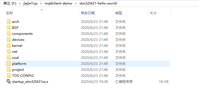 - platform文件夹:平台抽象层,此处封装了各种平台的内存管理、互斥锁、线程管理、时间管理等内容,如linux平台,freertos平台、rt-thread平台、TencentOS tiny平台等。