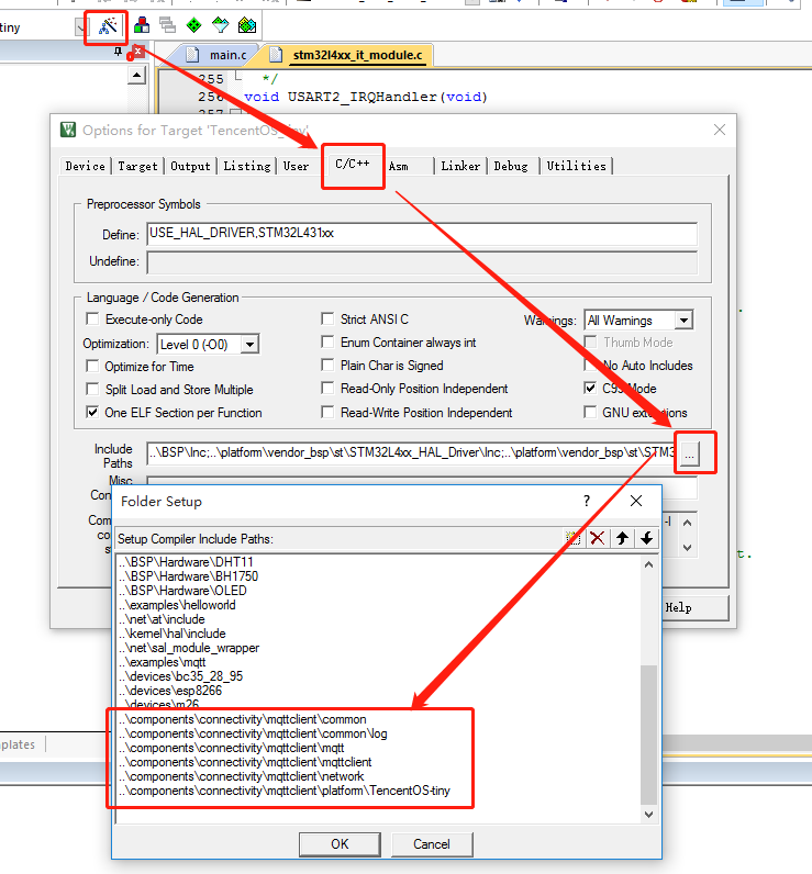 - 为工程添加mqttclient的头文件路径