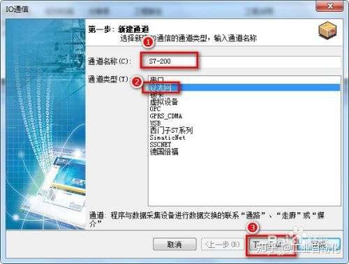 1、右击工程目录下的【IO 设备】,点击【新建】,输入通道名称,通道类型选择【以太网】通讯方式;