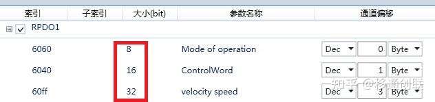 上图中按参数数据大小分别占据 1 个字节 2 个字节和 4 个字节所以起始位分别填写 0,1,3。