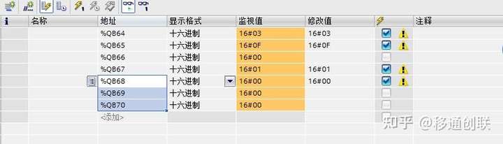 QB64~66 对应电机控制字依次写入 06,07,0F 启动电机QB67 对应速度写值后电机开始运转