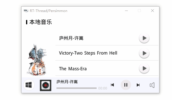 用于播放存储在本地的音乐,可以选择某一曲音乐进行播放