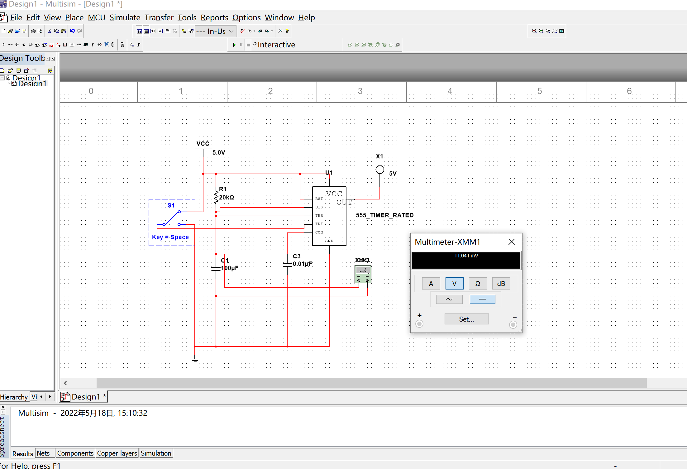 运行时电路逻辑没有问题,给下降沿时进入暂态,电容充电到2/3VCC时输出为低电平,但是电容的充电时间比计算的1.1RC长很多。